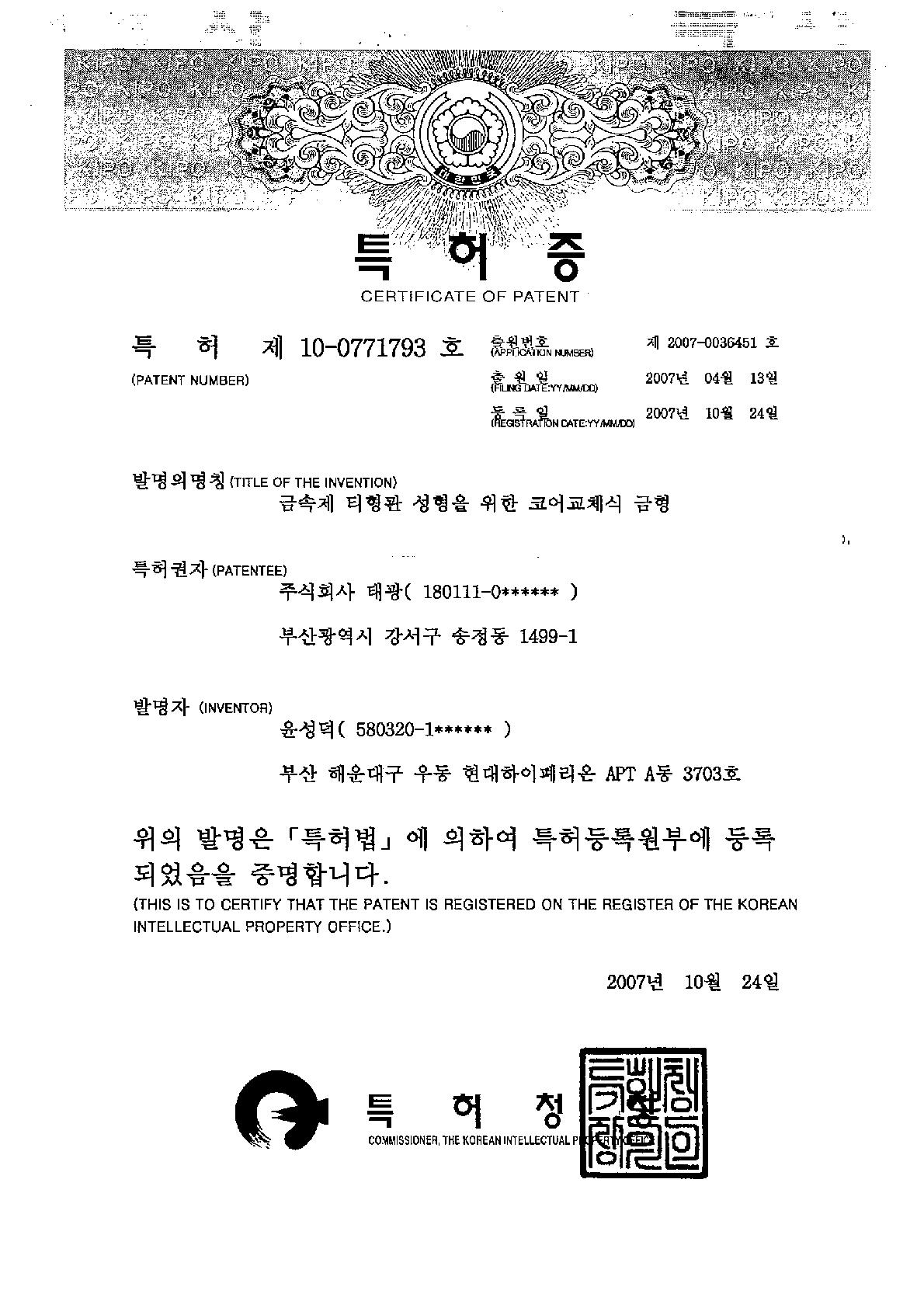 ±Ý¼ÓÁ¦ ƼÇü°ü¼ºÇüÀ» À§ÇÑ Äھü½Ä ±ÝÇü | |