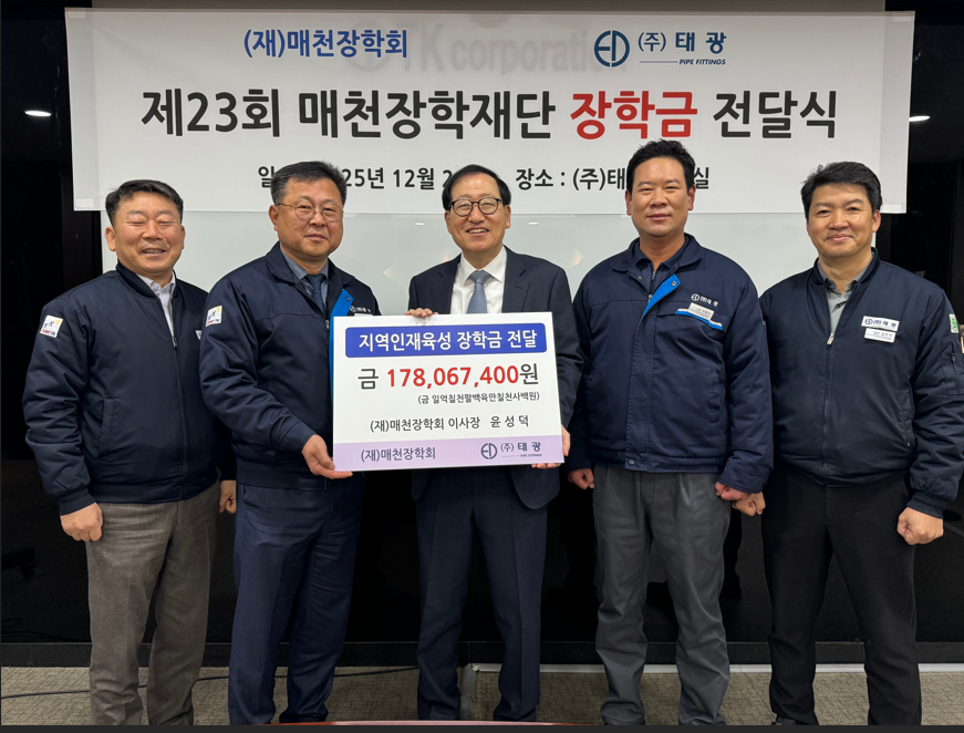 ¢ßű¤Àº 2025³â 12¿ù 24ÀÏ º»»ç ¼ÒÀç ȸÀǽǿ¡¼ ¡°Á¦ 23ȸ ¸ÅõÀåÇÐÀç´Ü ÀåÇÐ±Ý Àü´Þ½Ä¡±À» °ÅÇà Çß´Ù. ¸ÅõÀåÇÐÀç´ÜÀº »õÇбâ Áغñ¿¡ ¾Õ¼ °¡°èÀÇ °æÁ¦Àû ºÎ´ãµµ ´ú¾îÁÖ°í, ´Ù¾çÇÑ ²ÞÀ» À§ÇØ ³ë·ÂÇÏ´Â ÇлýµéÀÌ Çо÷¿¡ Àü³äÇÒ ¼ö ÀÖµµ·Ï ºÎ»êÁö¿ª ÁßÇлý 77¸í, °íµîÇлý 37¸í, ´ëÇлý 20¸í µî ÃÑ 134¸í¿¡°Ô ÃÑ 1¾ï 7,806¸¸ ¿øÀ» Áö¿øÇÏ¿© Áö¿ª ÀÎÀç À°¼º¿¡ ¾ÕÀå¼°í ÀÖ´Ù.